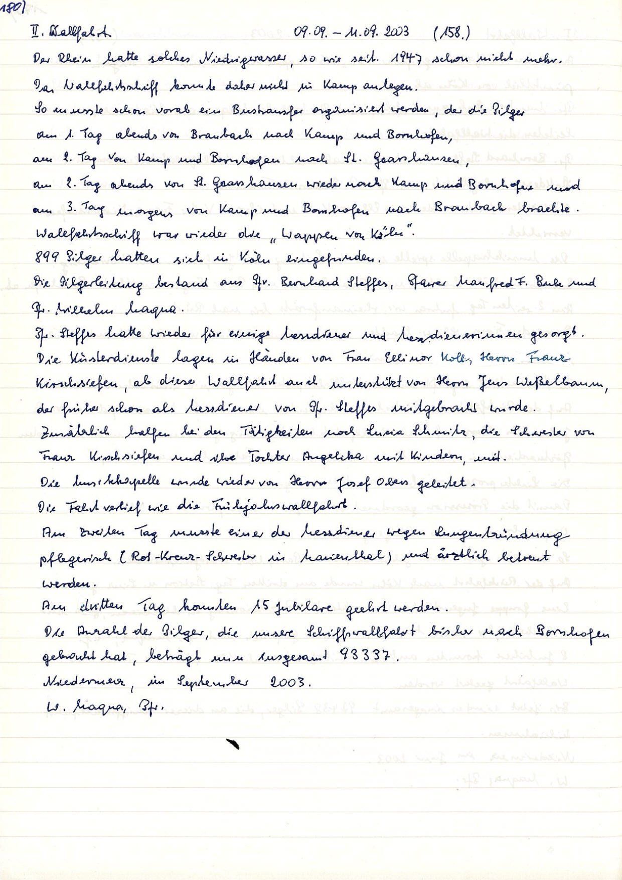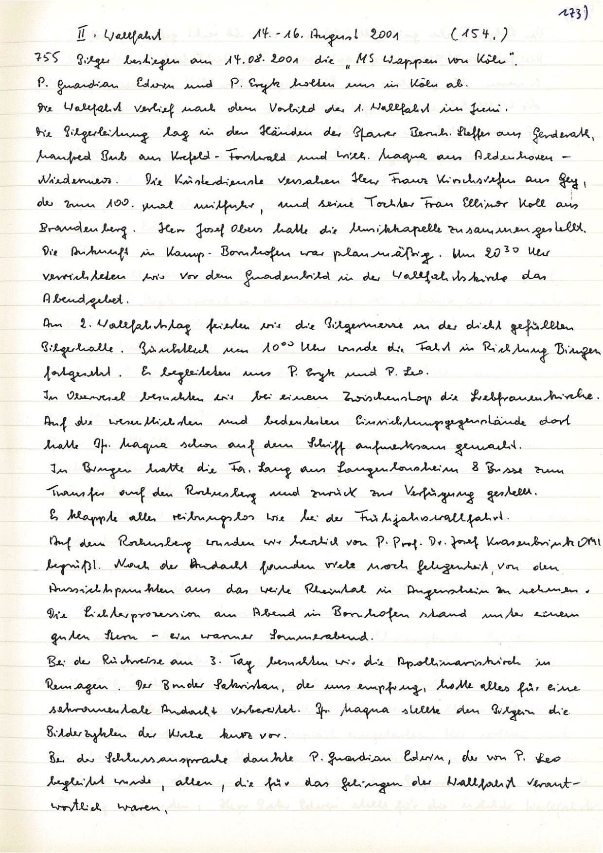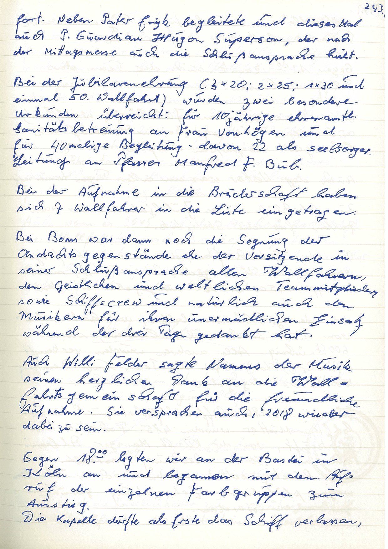 Ich ermutige alle Pilger, sich mit Ihren Fähigkeiten und Fertigkeiten einzubringen, das Gespräch mit uns zu suchen und durch Ihre Mithilfe für eine gelungene und zukunftsfähige